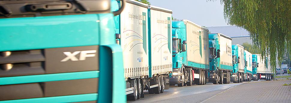 Der in Gießen stationierte eigene Fuhrpark umfasst mehr als 40 Fahrzeuge , vom Transporter bis zum Sattelzug.
